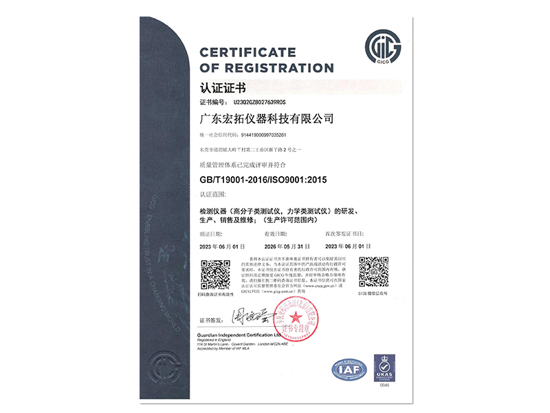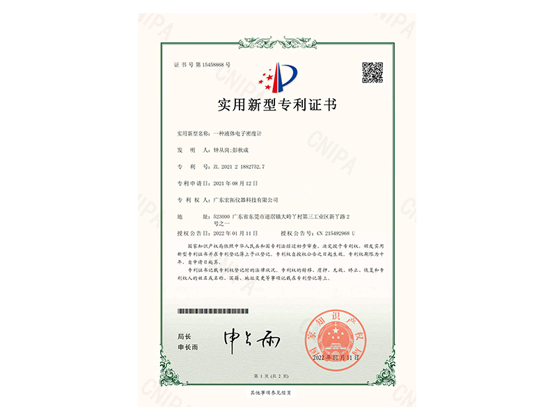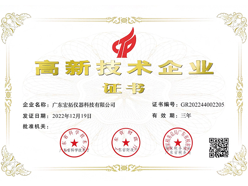 宏拓儀器通過(guò)ISO9001:2015質(zhì)量體系管理認(rèn)證,通過(guò)國(guó)家計(jì)量測(cè)試中心全面質(zhì)量與性能檢測(cè),獲得國(guó)家計(jì)量器具型式批準(zhǔn)CPA證書,T/SGX 001—2019標(biāo)準(zhǔn) 與T/SGX 007—2019標(biāo)準(zhǔn)起草單位,參于制定的國(guó)家標(biāo)準(zhǔn)GB/T43139-2023正式發(fā)布,擁有自主知識(shí)產(chǎn)權(quán),獲得國(guó)家多項(xiàng)實(shí)用新型專利證書與發(fā)明專利,產(chǎn)品通過(guò)歐盟CE認(rèn)證。