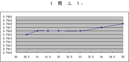結論:溫度對甲醇密度測定的影響是非常大的。在標準規定的范圍內同一試樣的密度基本上呈直線,溫度過低及溫度過高時則偏離此直線。一般要求測定的溫度是15-35℃,但是甲醇的揮發點比較低,所以平時測量時溫度不宜太高,一般保持在20℃左右,環境溫度變化應不大于±2℃,記錄溫度變化接近到0.1℃。