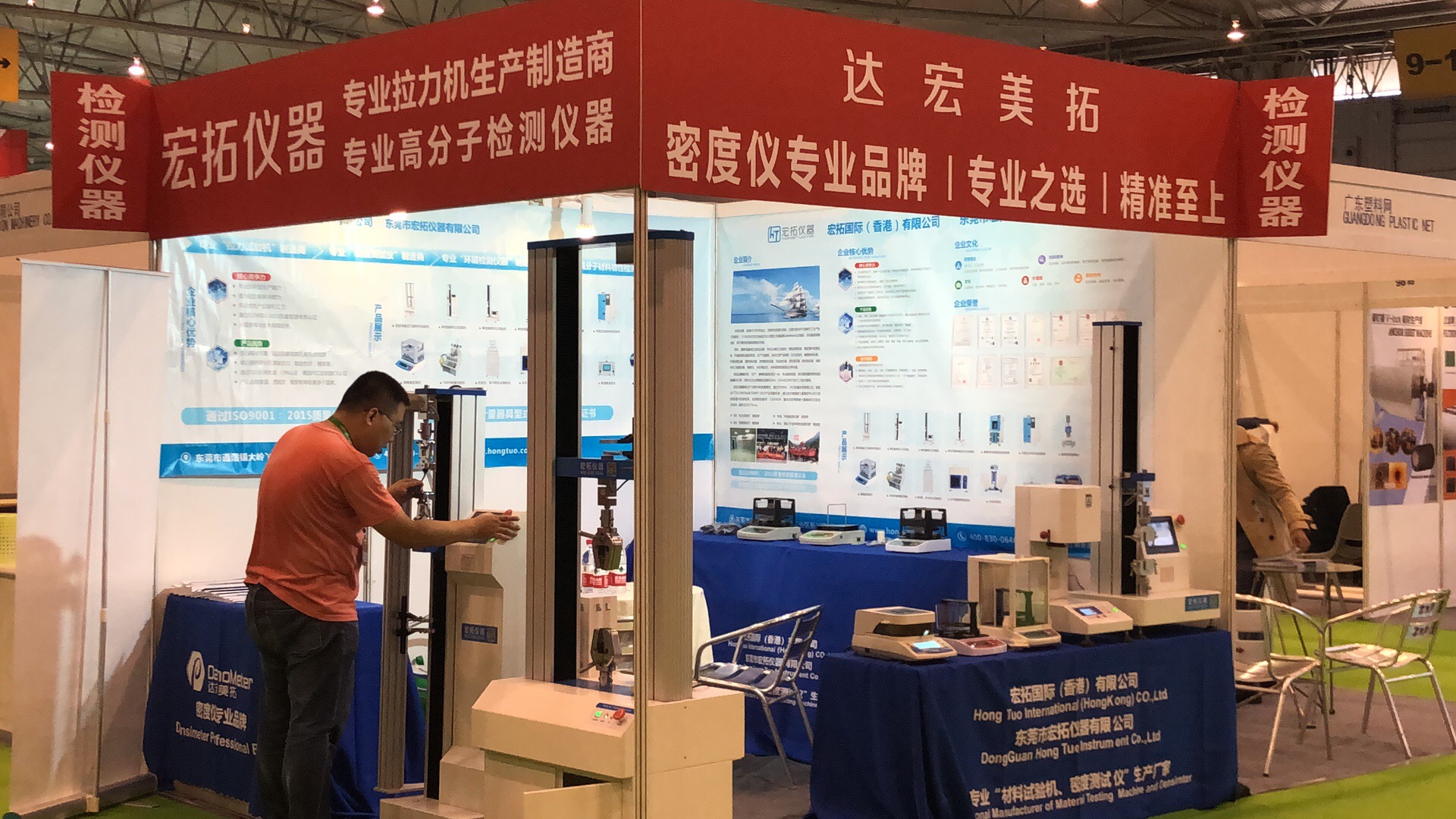 在本次展會上,東莞市宏拓儀器有限公司展出了自主生產的拉力試驗機,密度測試儀,高分子材料物性檢測儀器等企業工廠試驗室標配測試儀器,針對生產企業在拉力測試和物理性能測試中面臨的需求、效率、成本等問題,提供了切實有效的解決方案。歷時3天(10月10-13日)的展會,宏拓儀器展臺吸引了無數參展者的駐足,而工作人員也始終以飽滿的熱情、耐心地與參展者溝通,產品的特色和優勢在宏拓儀器工作人員精彩的演說及演示下展現得淋漓盡致,會場上的專業觀眾及參展企業對產品有一定了解之后,對宏拓儀器所展出的測試儀器表示了極大的興趣,很多客戶都現場進行了詳細咨詢,希望通過這次機會進行深入合作。