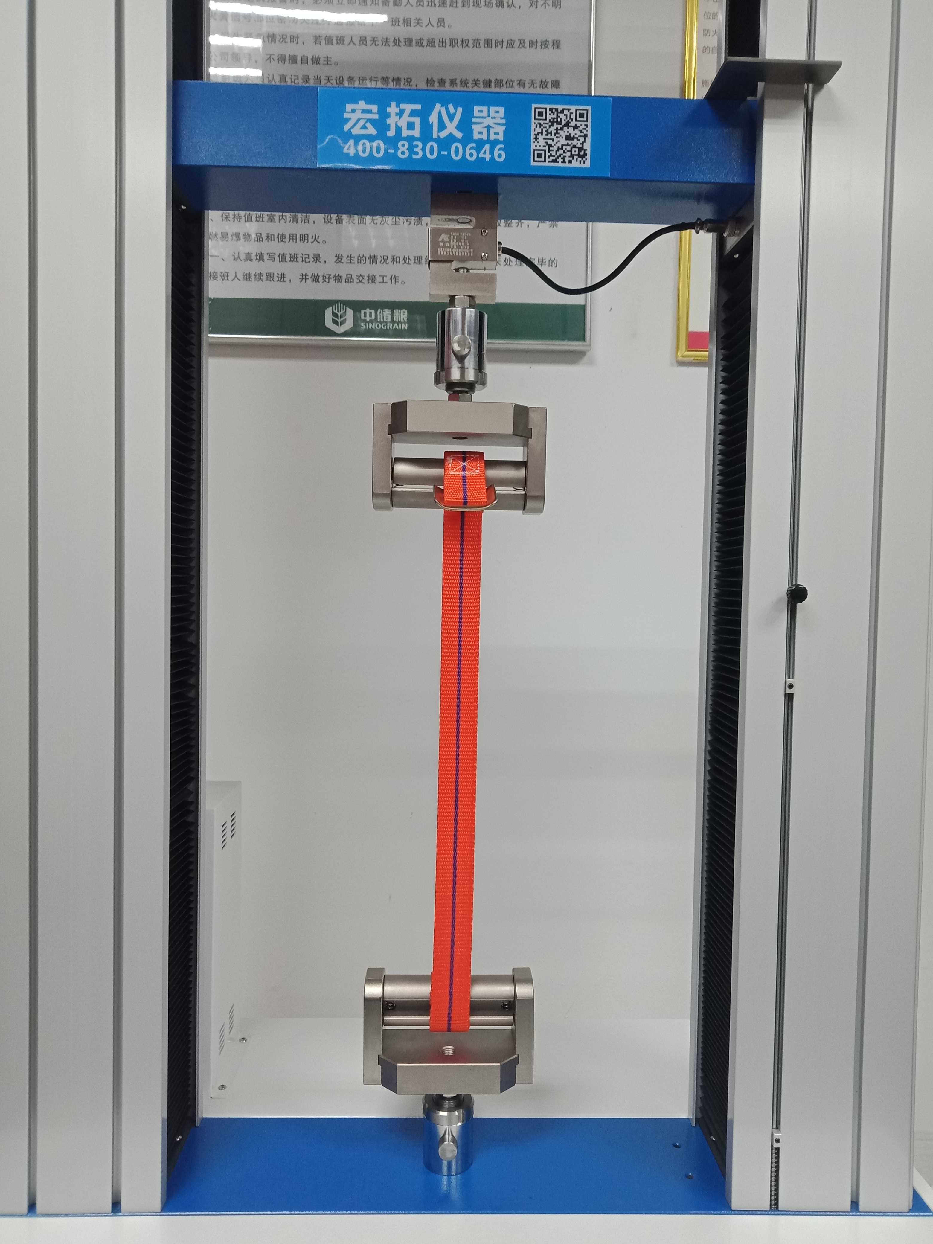近日,這臺AR-140SC-5雙柱型拉力試驗機已交付中儲糧油脂工業東莞有限公司使用,在送貨后,宏拓儀器的現場教學人員在客戶實驗室現場教學,細心指導客戶實驗室工作人員操作使用AR-140SC-5雙柱型拉力試驗機對高空作業安全帶樣品進行力學測試,客戶對東莞宏拓儀器細心周到的售后服務表示贊同。