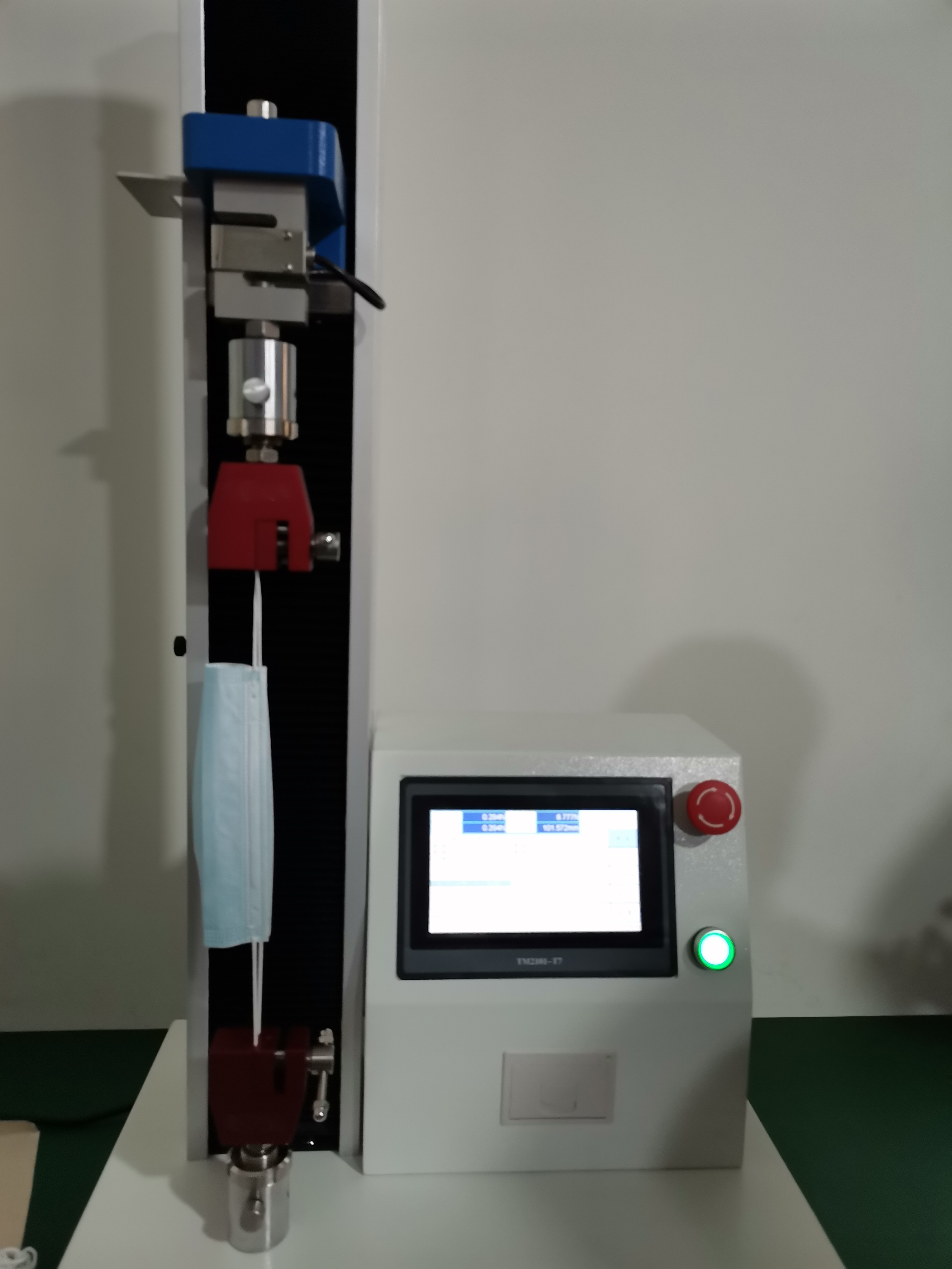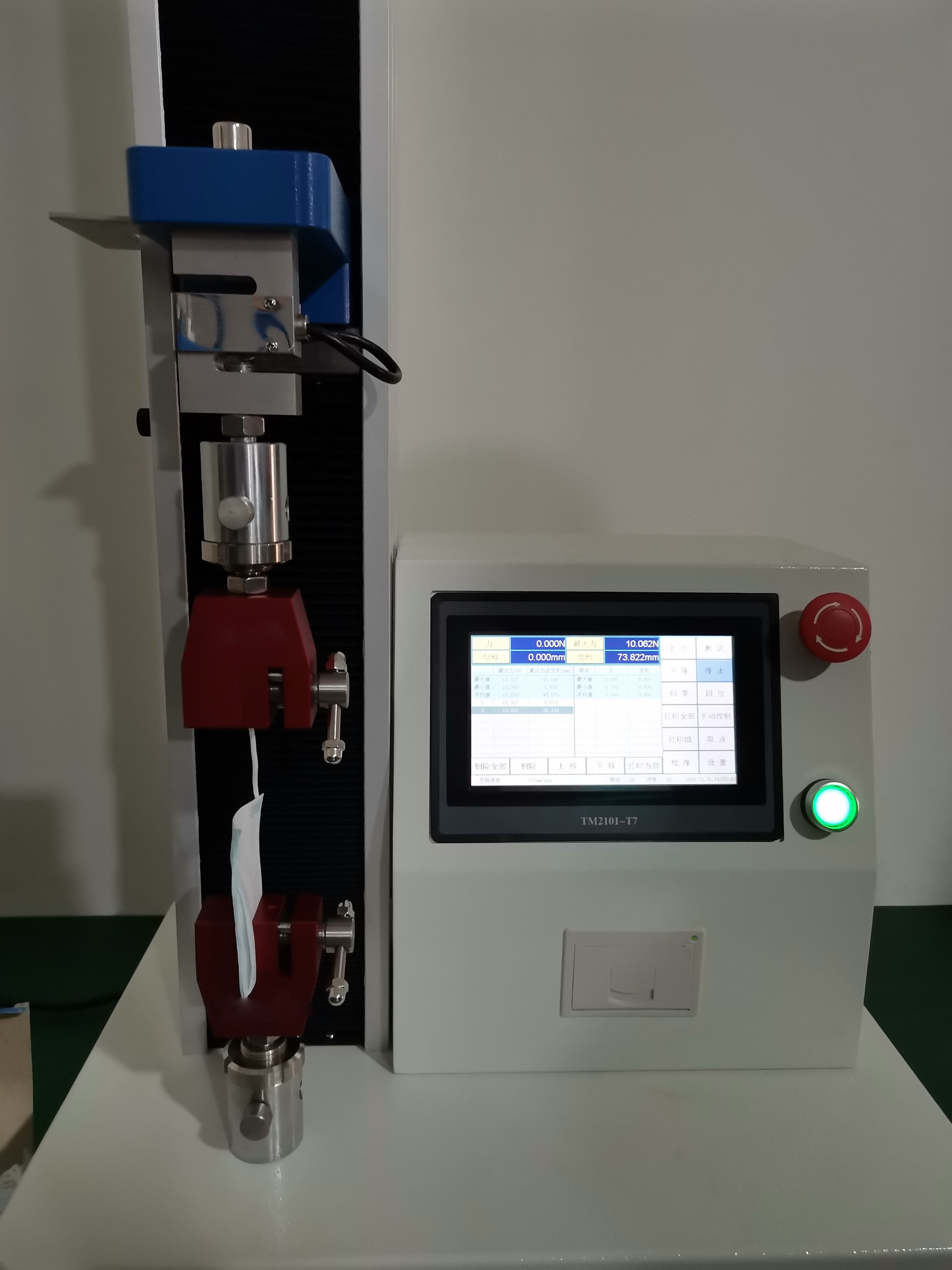 《YY 0469醫用外科口罩》標準中規定,口罩帶與口罩連接點處的斷裂強度應不小于10N,檢測該項目可以使用宏拓儀器研發生產的HT-101PT-05系列智能電子拉力試驗機,配置專業的測試夾具,進行口罩或口罩帶與連接處的拉伸強度、拉伸斷裂力的檢測。