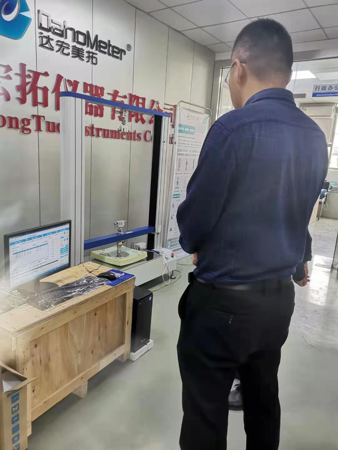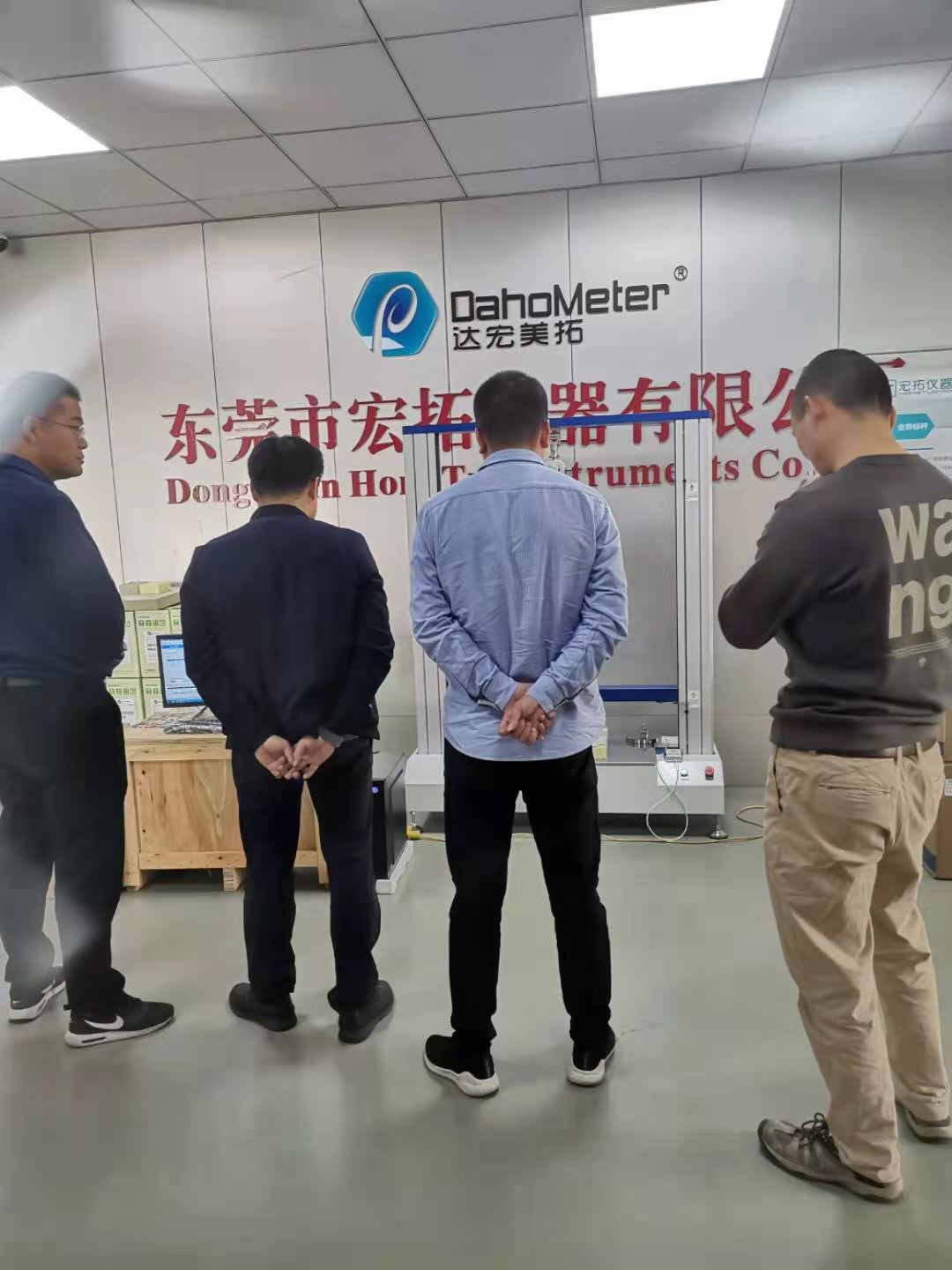 客戶湖北麥德利航空材料科技有限公司在觀看壓縮測(cè)試和驗(yàn)收HT-140SC-5加寬型拉力試驗(yàn)機(jī)