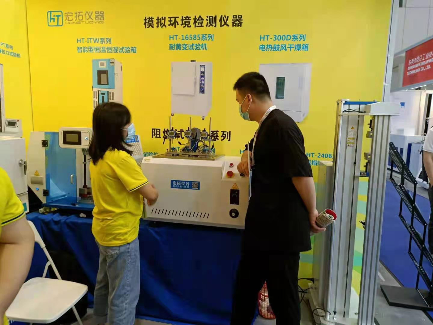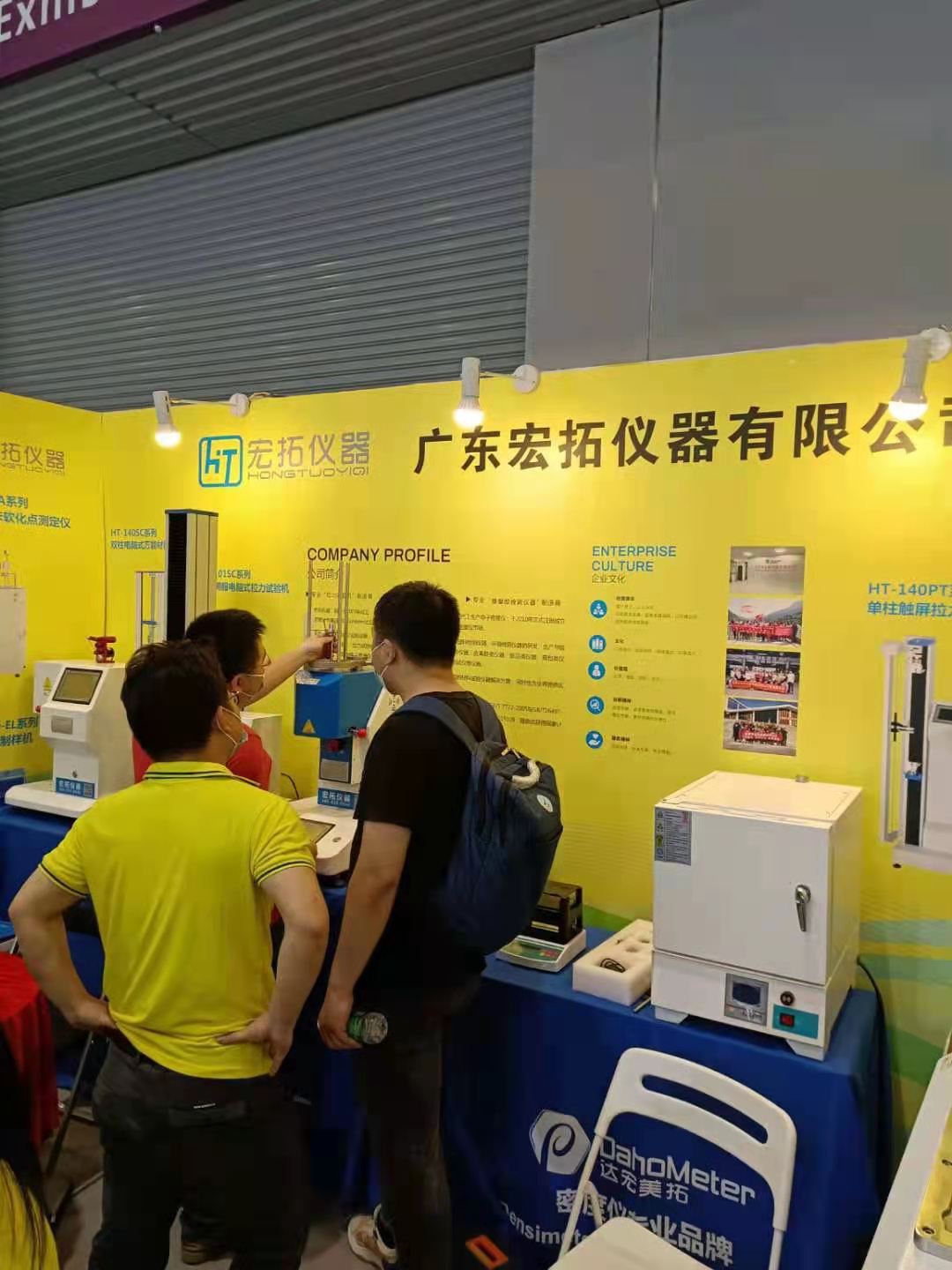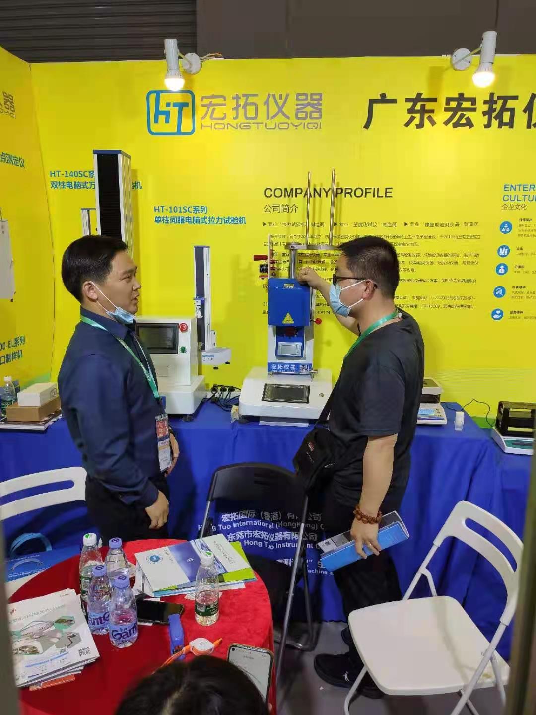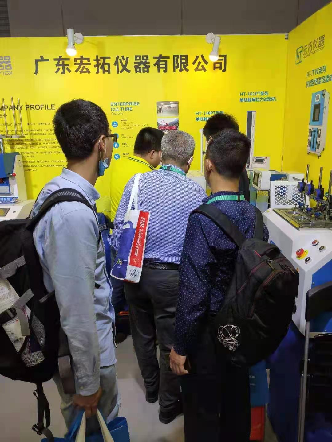 在展會期間,每天都有廣東宏拓儀器科技有限公司的新老客戶都蒞臨現場展位參觀,咨詢和交流,現場的工作人員耐心的向參觀和咨詢的客戶介紹產品的使用流程和工作原理,對客戶提出的測試時遇到的問題和疑惑也進行了一一解答,有的客戶在經過詳細的咨詢和解答后,現場就與宏拓達成了初步購買協議。
