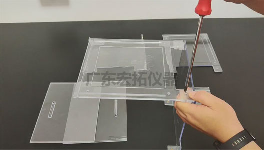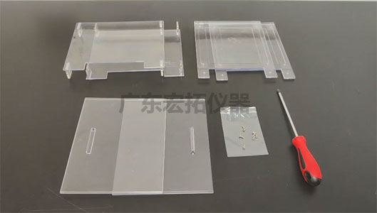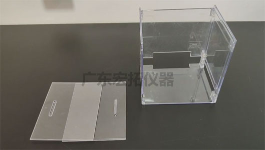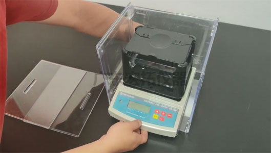 6、把密度計(jì)放入防風(fēng)罩里面,放入兩塊活動(dòng)板,安裝防風(fēng)罩完成。