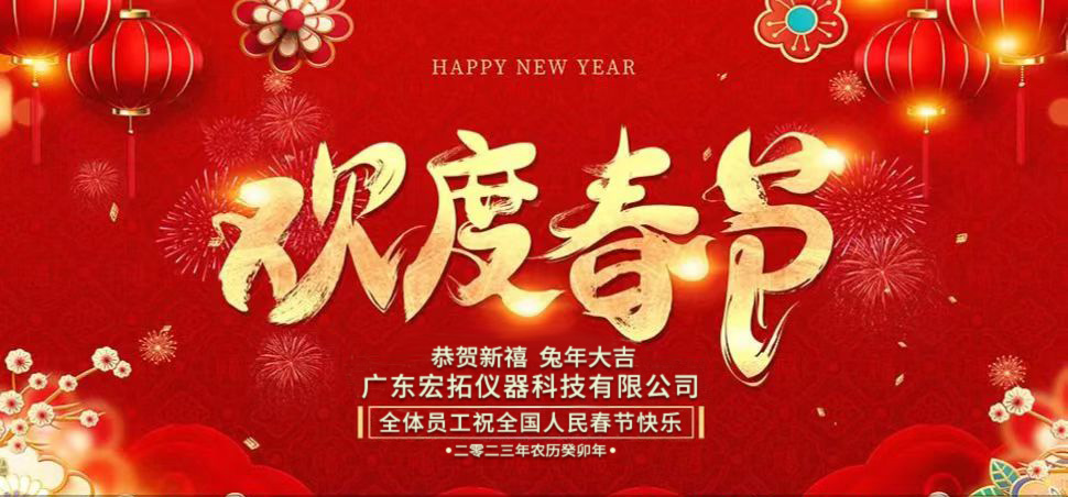 新年伊始,萬象更新,2023年春節的腳步聲聲將至,值此金兔迎春之際,首先對貴司再2022年對本公司的支持和通力合作表示衷心的感謝。過去的一年中,在您的支持和信賴下,我們才得以在激烈的市場環境下不斷大步挺進!在此廣東宏拓儀器科技有限公司全體同仁恭祝諸位:百業和順,財源廣進!